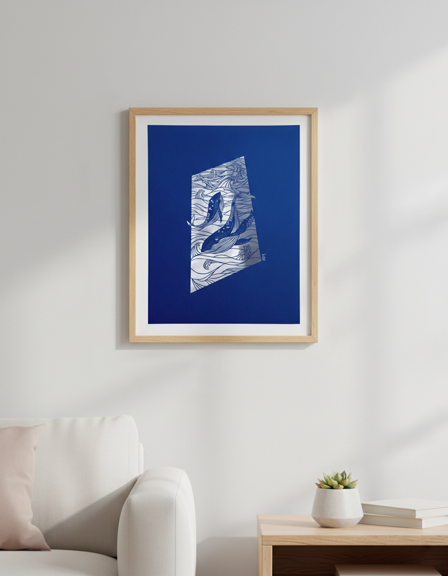 Deux baleines ondulent au cœur de l'océan.